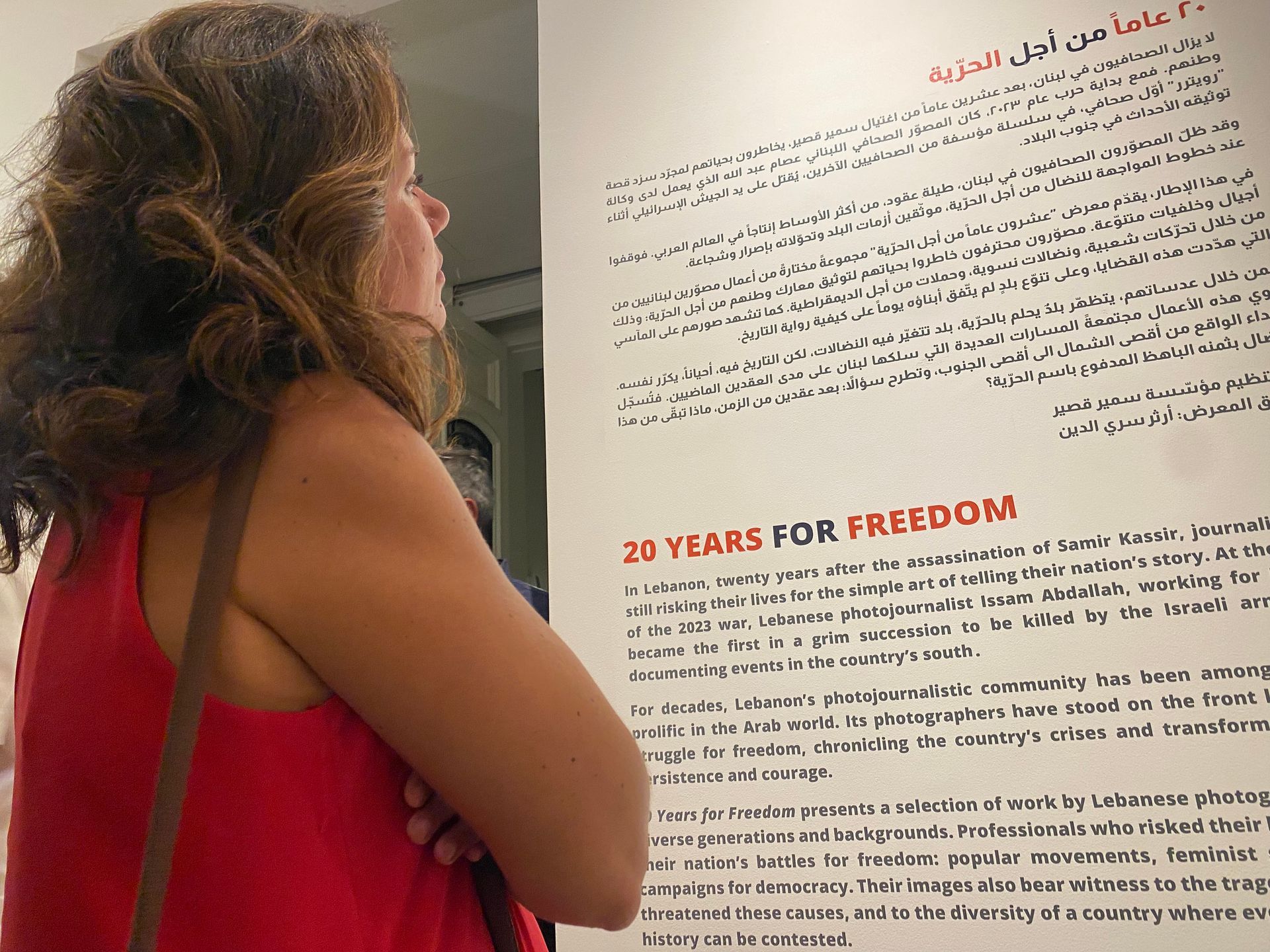 The exhibition commemorates twenty years since the assassination of journalist and historian Samir Kassir, whose life and work remain a symbol of freedom of expression in Lebanon and the region.