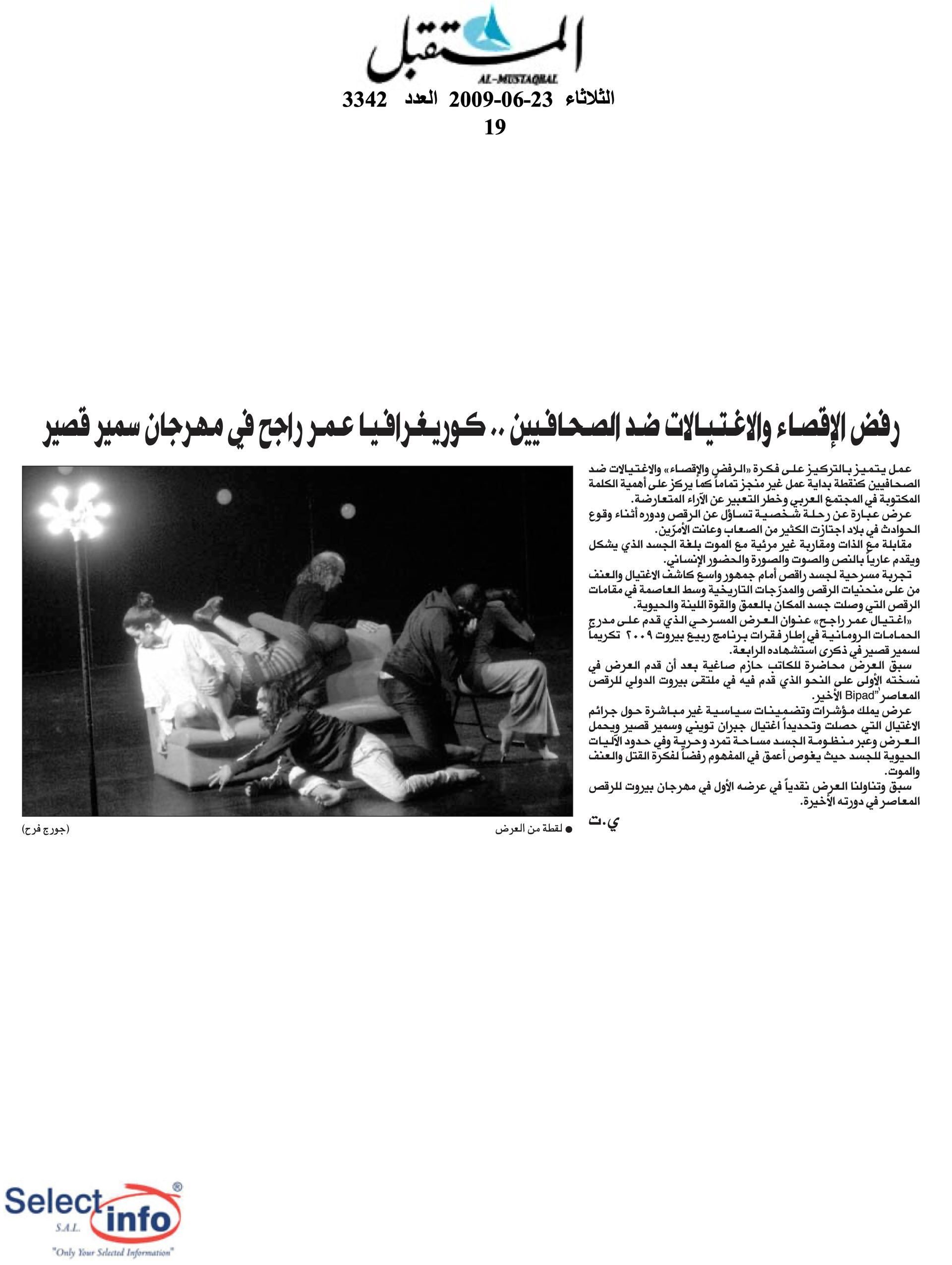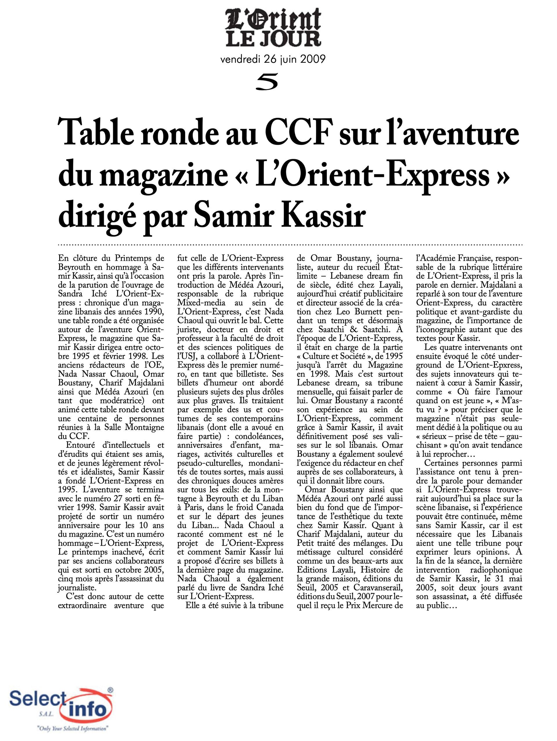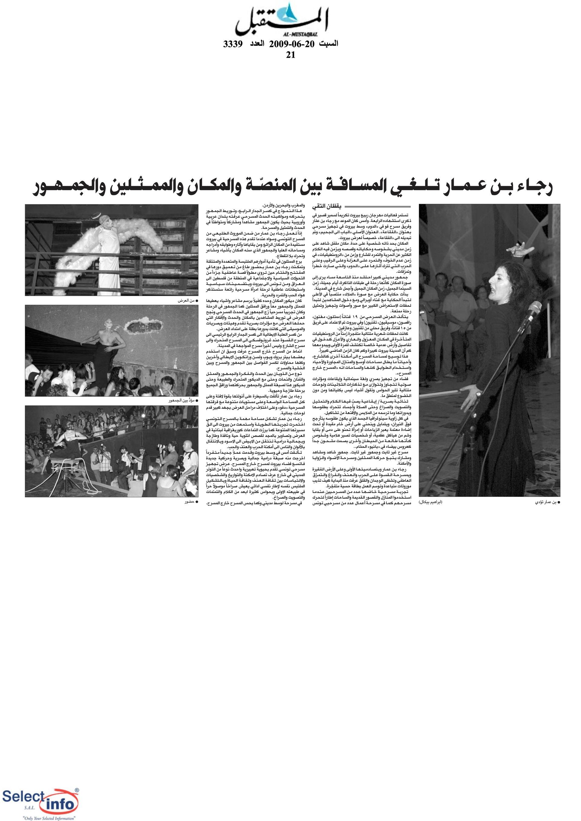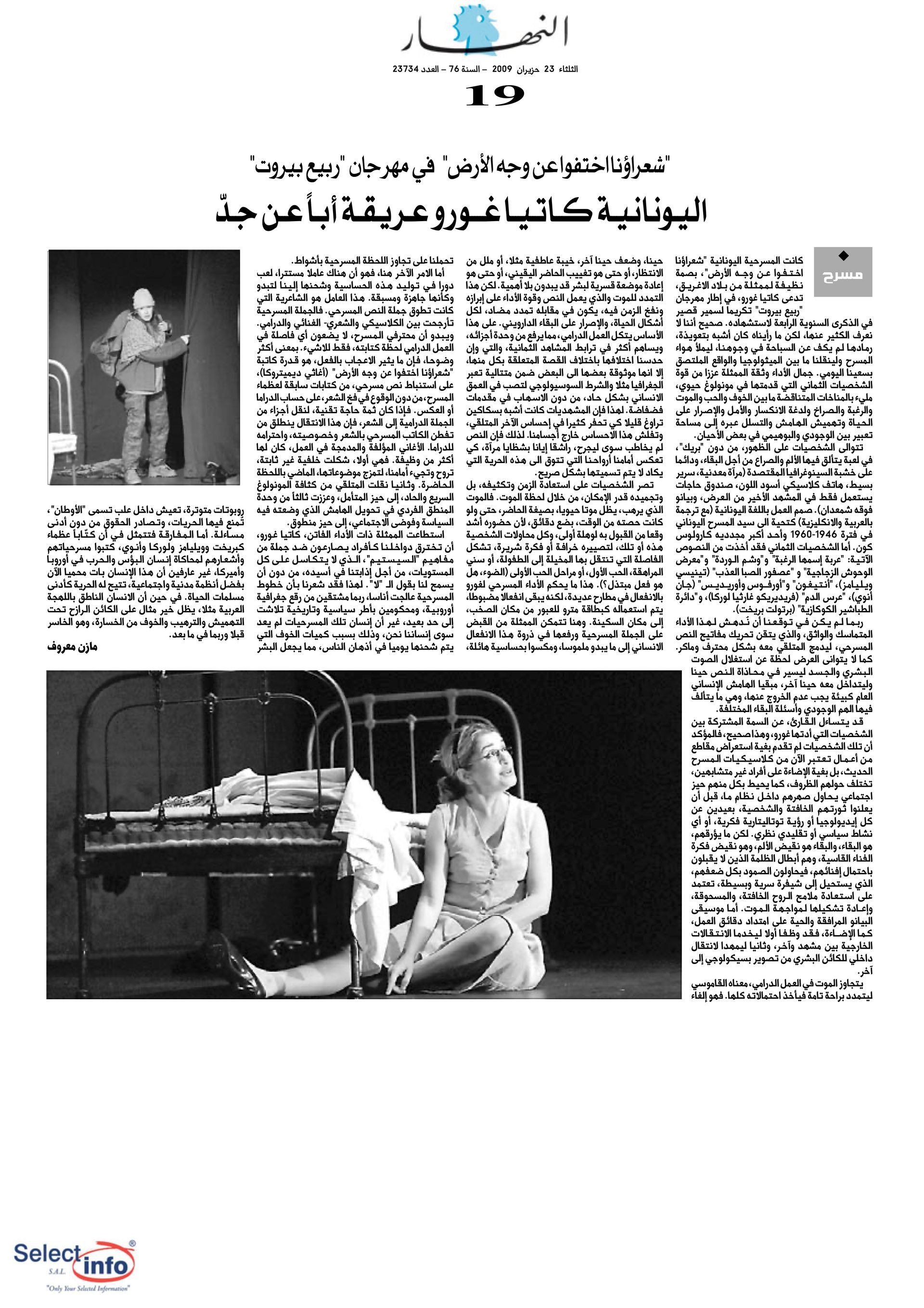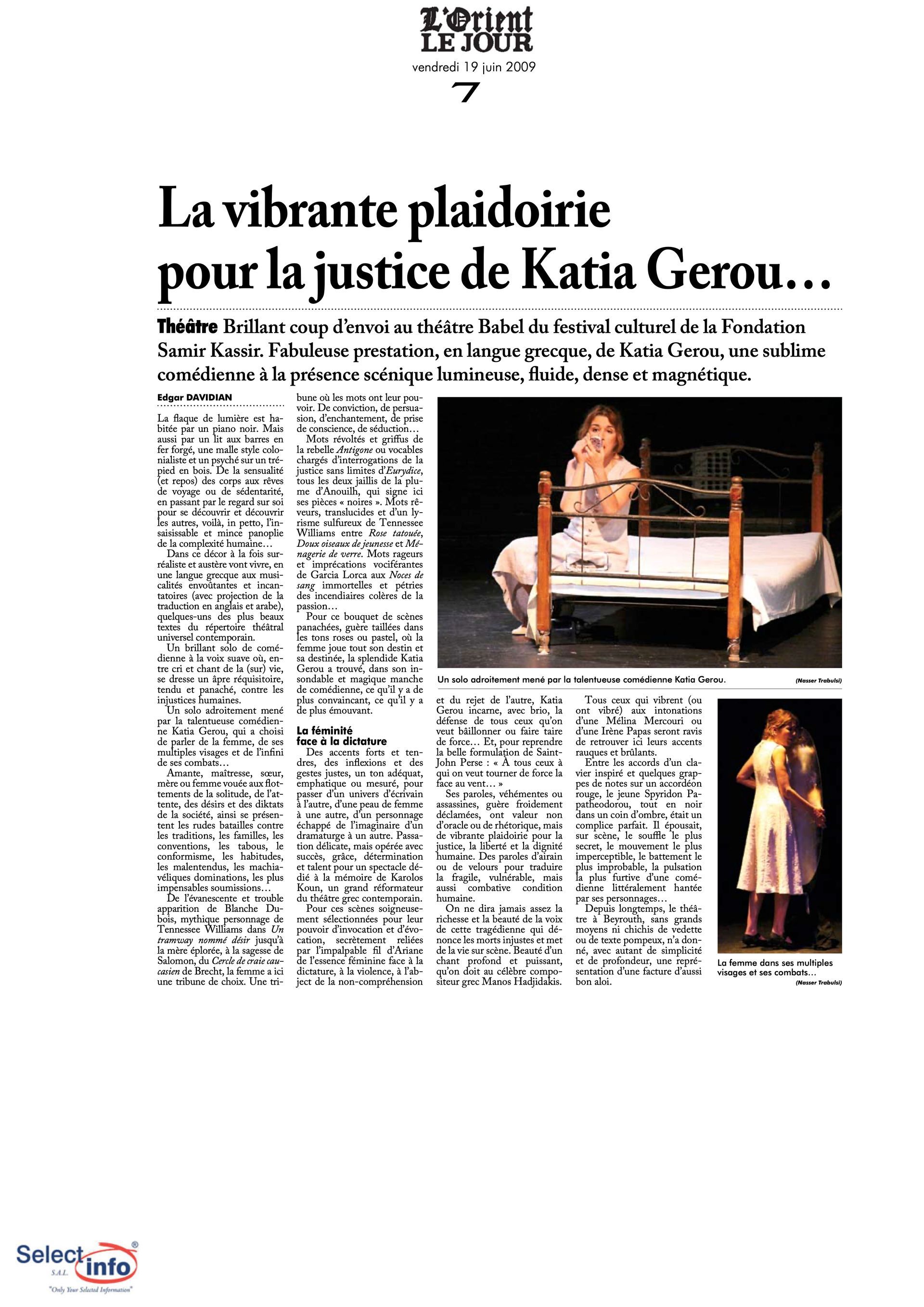 The first edition of the Beirut Spring Festival took place on the 4th anniversary of the assassination of journalist Samir Kassir. Produced by the Samir Kassir Foundation, the Festival presented a 6-day program featuring theatre, multimedia installation, performance, opera concert, a dance performance conference, a hip hop concert, and a roundtable about the Orient Express book. This first edition gathered talent from Lebanon, Greece, Tunisia, France, Iran, Canada and the UAE in a variety of indoor and outdoor locations (theatre halls, architecture of decay, public garden and a Roman historic site) thanks to the support of 11 partners and the coverage of the press for the pleasure of the participants.