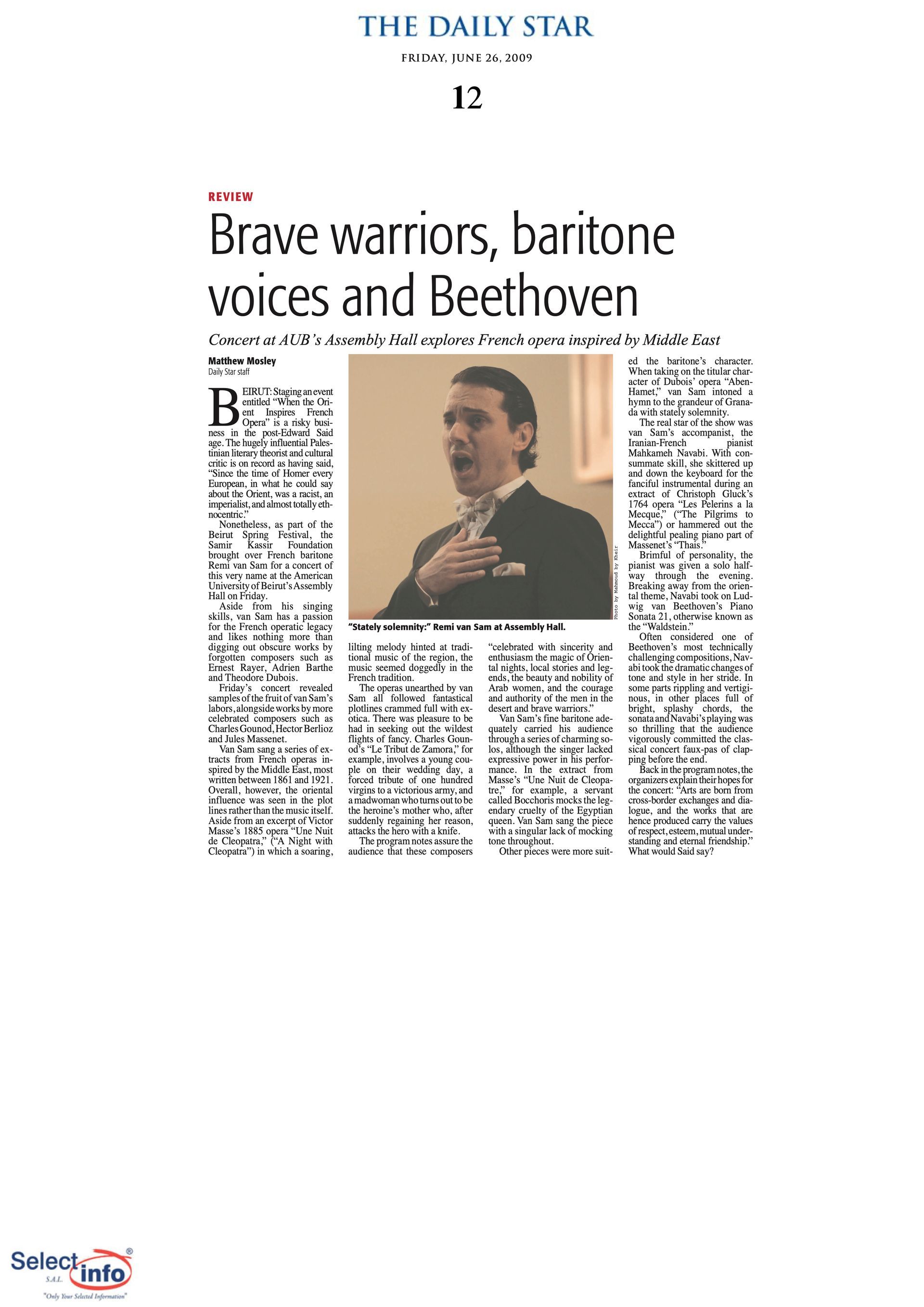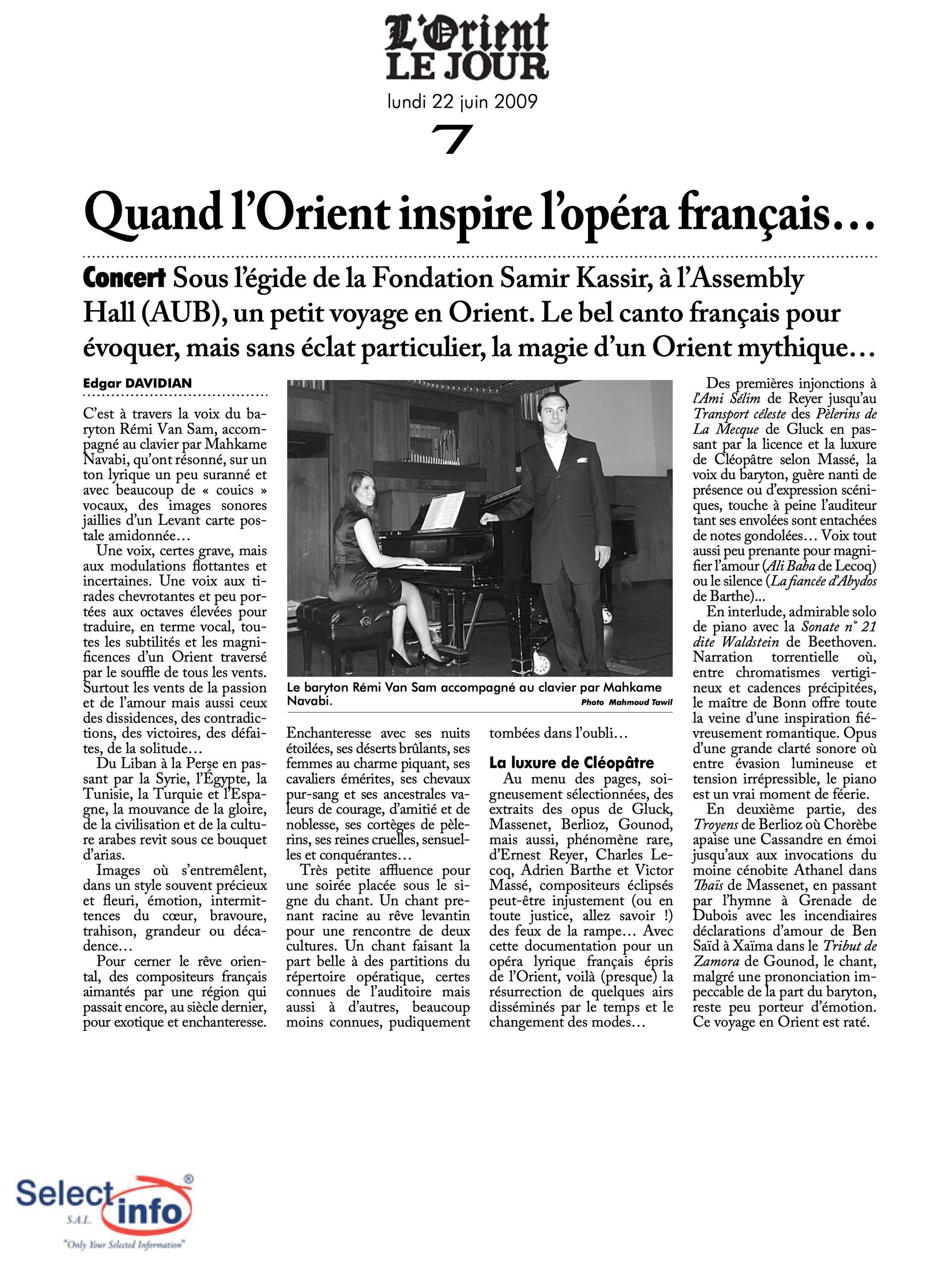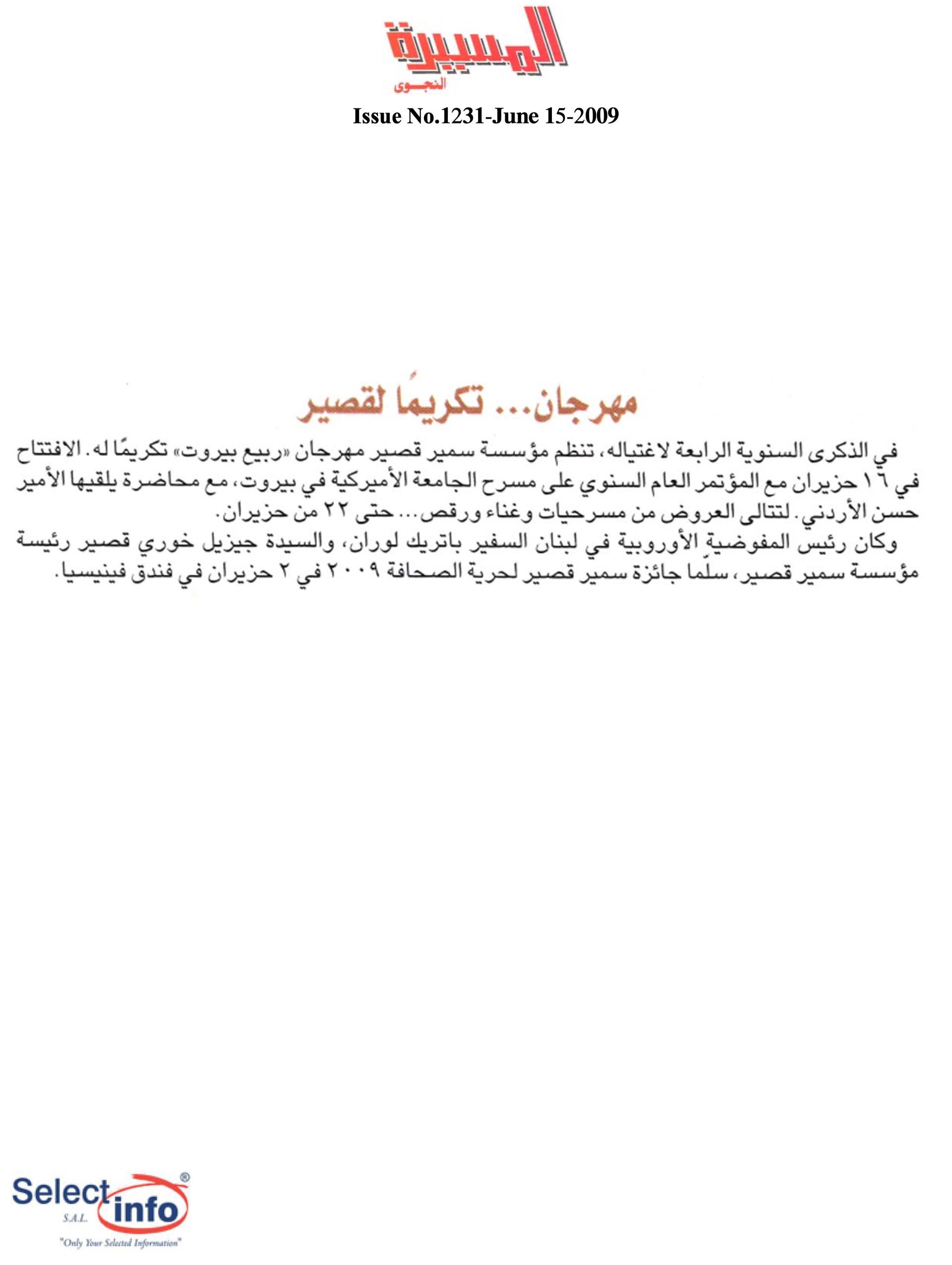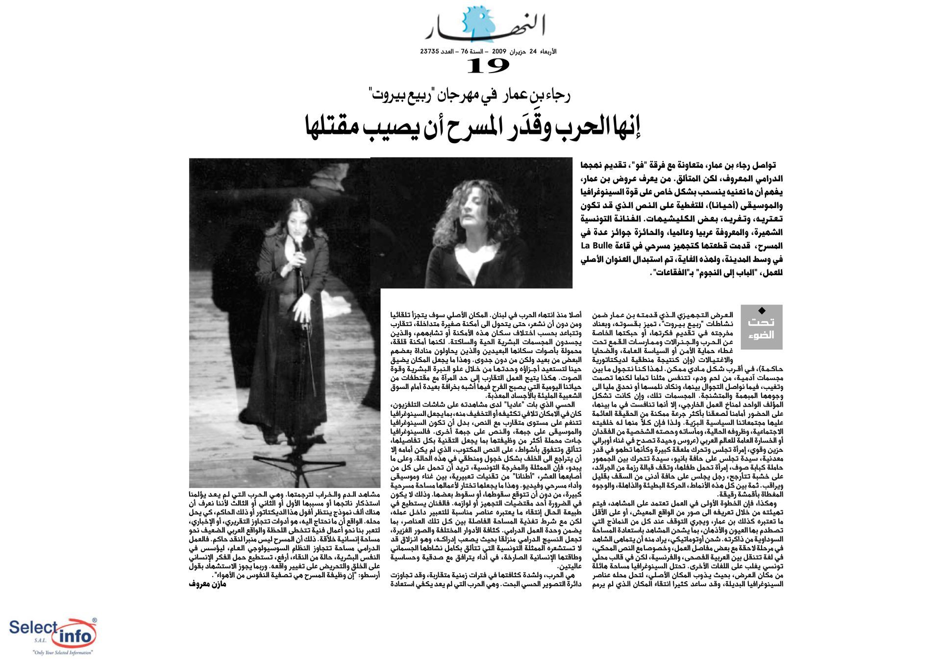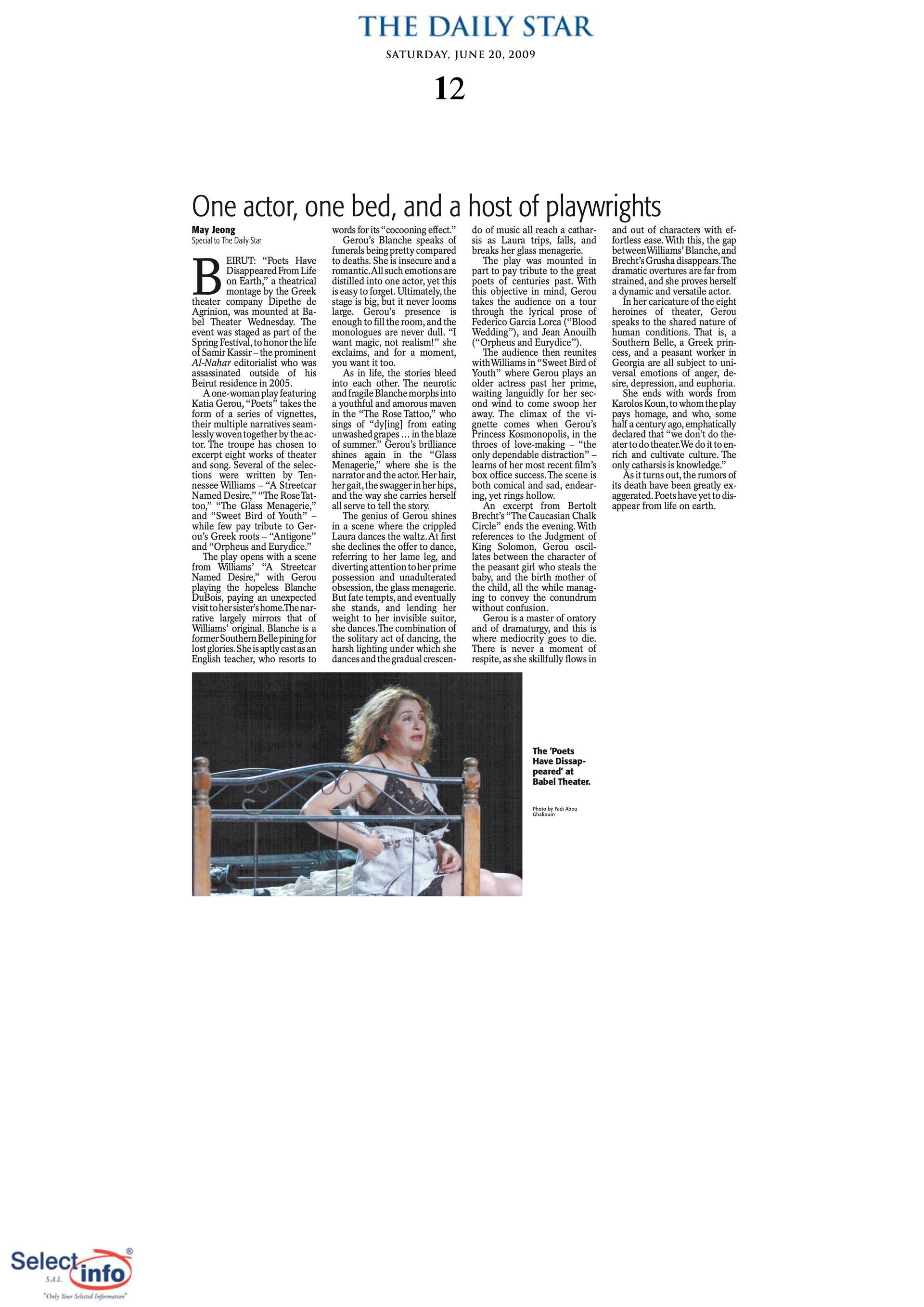 The first edition of the Beirut Spring Festival took place on the 4th anniversary of the assassination of journalist Samir Kassir. Produced by the Samir Kassir Foundation, the Festival presented a 6-day program featuring theatre, multimedia installation, performance, opera concert, a dance performance conference, a hip hop concert, and a roundtable about the Orient Express book. This first edition gathered talent from Lebanon, Greece, Tunisia, France, Iran, Canada and the UAE in a variety of indoor and outdoor locations (theatre halls, architecture of decay, public garden and a Roman historic site) thanks to the support of 11 partners and the coverage of the press for the pleasure of the participants.