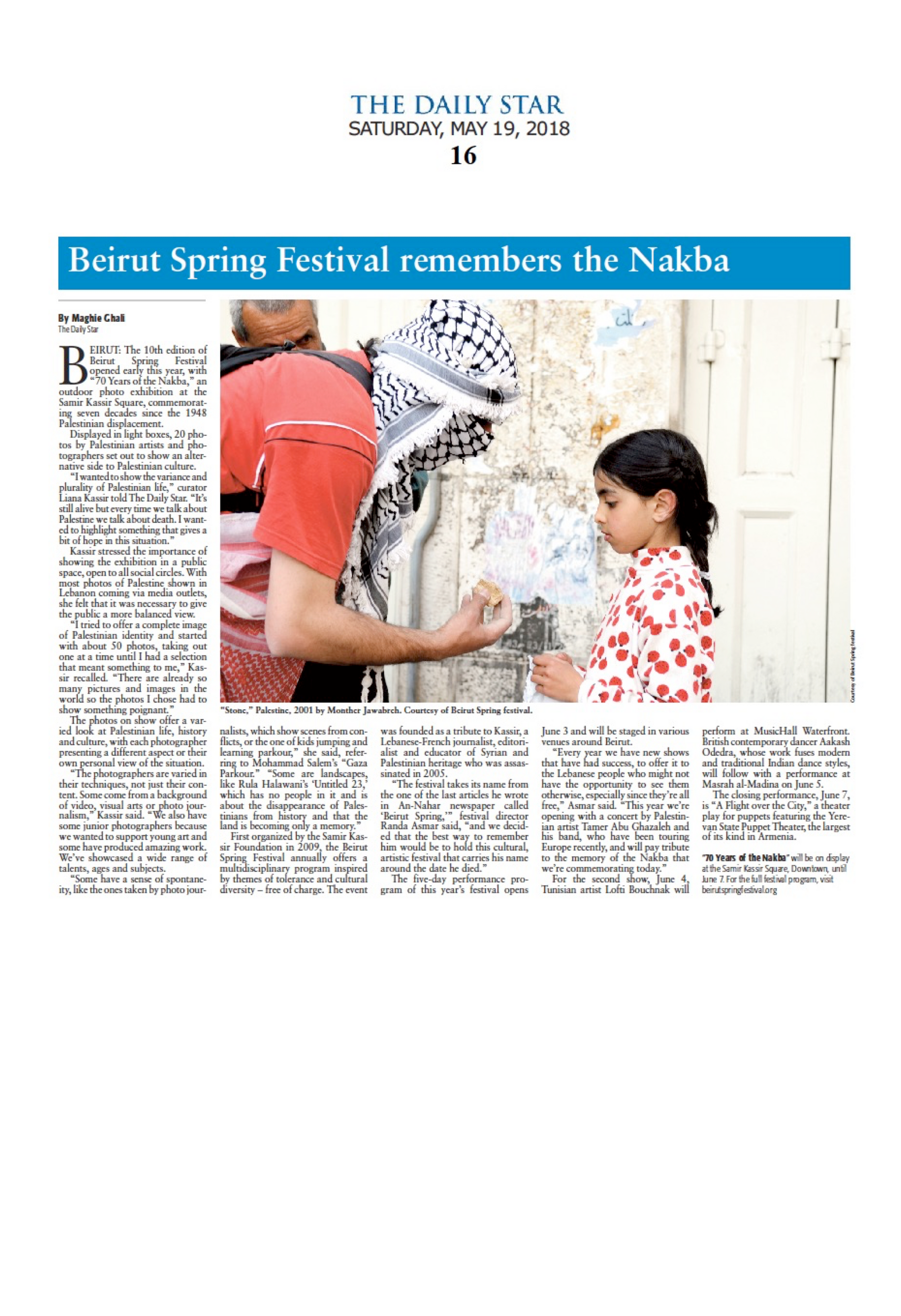The twnety contributors are photographers, visual artists and photojournalists Tarek Al- Ghoussein, Mohammed Al Hawajri, Bashar Alhroub, Sama Alshaibi, Taysir Batniji, Ahmed Deeb, Essa Grayeb, Tanya Habjouqa, Rula Halawani, Samar Hazboun, Monther Jawabreh, Yazan Khalili, Rania Matar, Steve Sabella, Suhaib Salem, Mohammed Salem, Larissa Sansour, Osama Silwadi, Sharif Waked, Mohammed Zakaria.