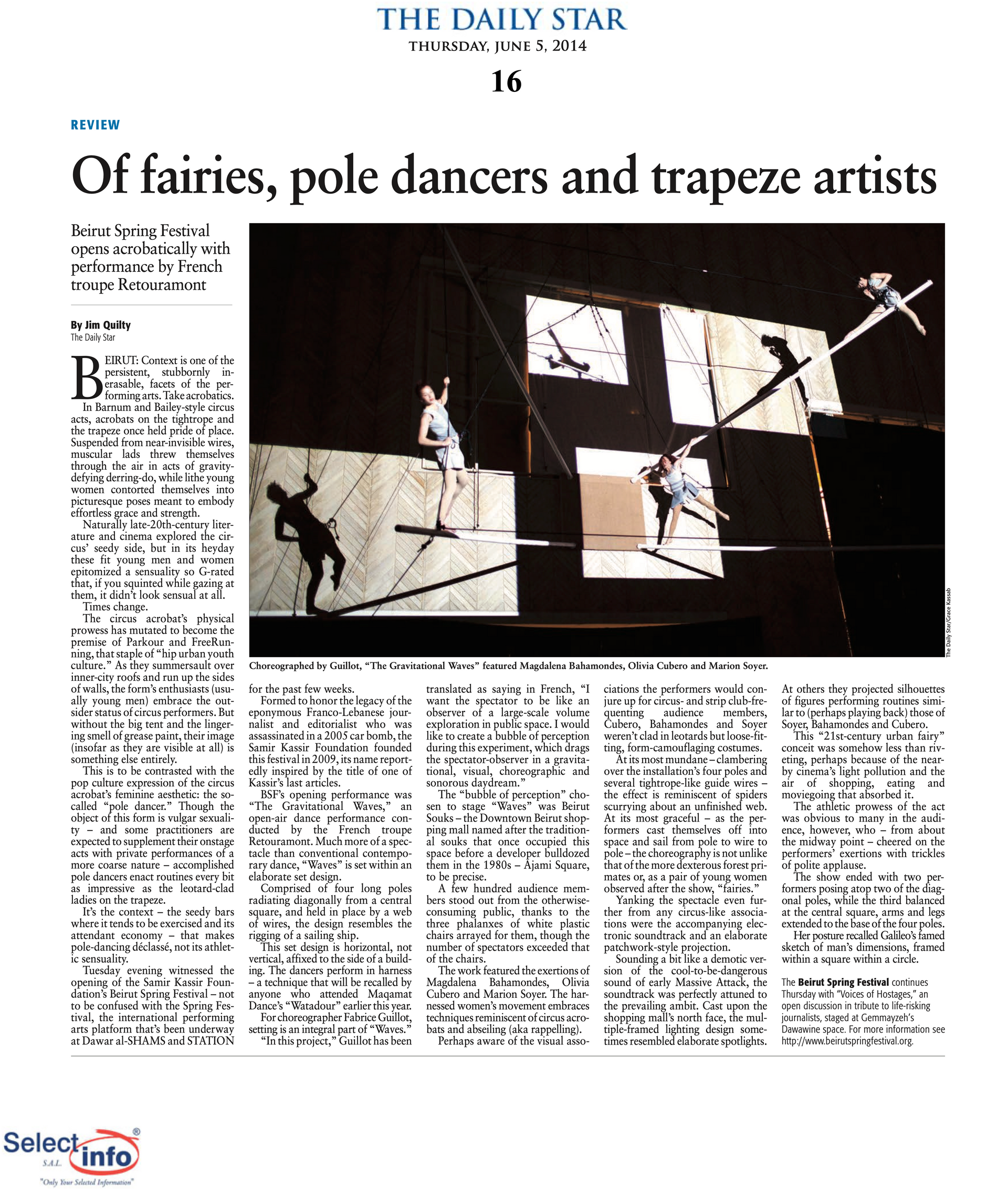 Stockton International Riverside Festival/UK, Abattoir / CNAR in Chalon-sur-Saône, Espace des Arts/SN of Chalon, Atelier 231 / CNAR in Sotteville-lès-Rouen, La Paperie / CNAR in Angers, Citron Jaune / CNAR in Port St Louis du Rhône, La Boyauderie de Poi¬tiers/Usines Boinot / CNAR in Niort, Theatre of Cachan, with the support of Ferme du Buisson/Noisiel and the Historical Service of Defense.