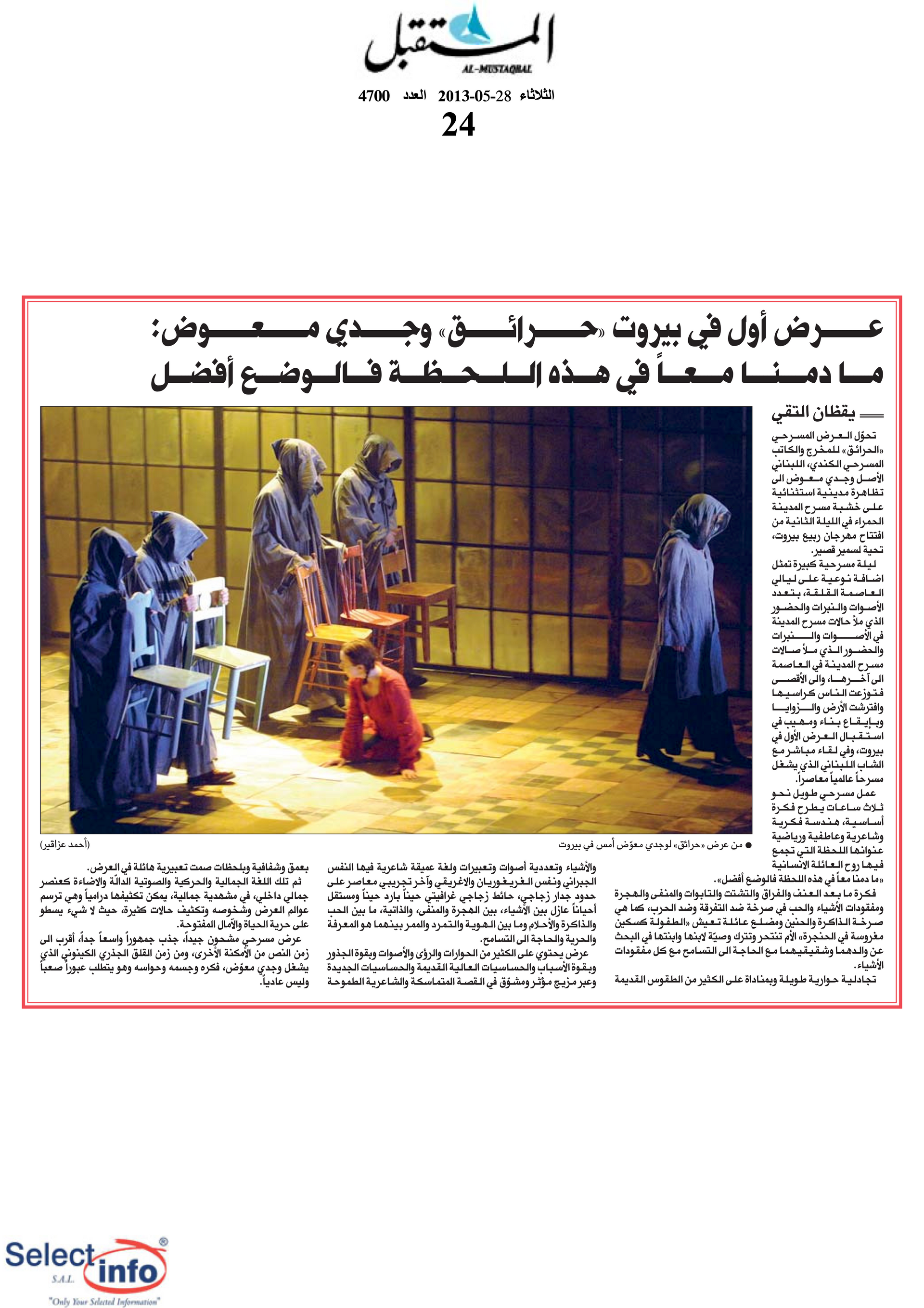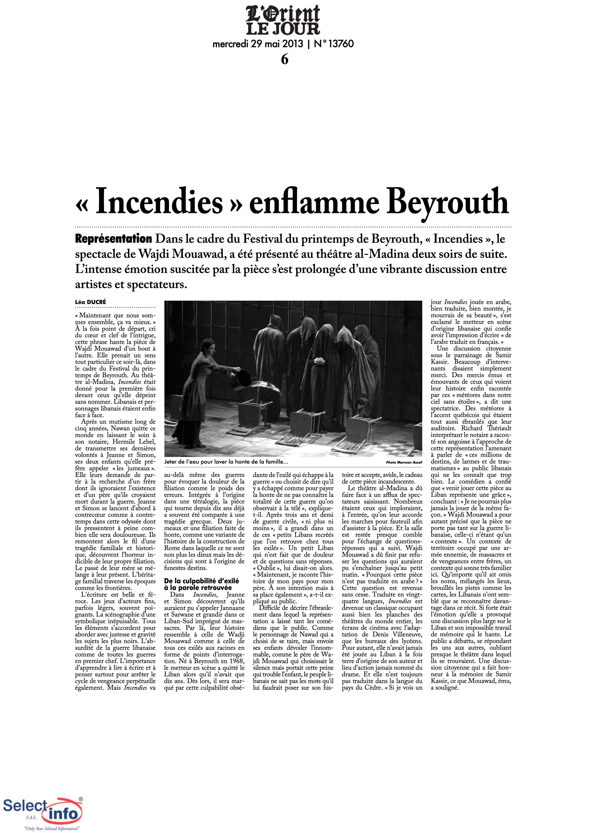 Wajdi Mouawad is one of today's rare authors who knows how to embrace myth. In Incendies, contemporary tragedy echoes Greek tragedy (...) A carnal and generous piece of writing.