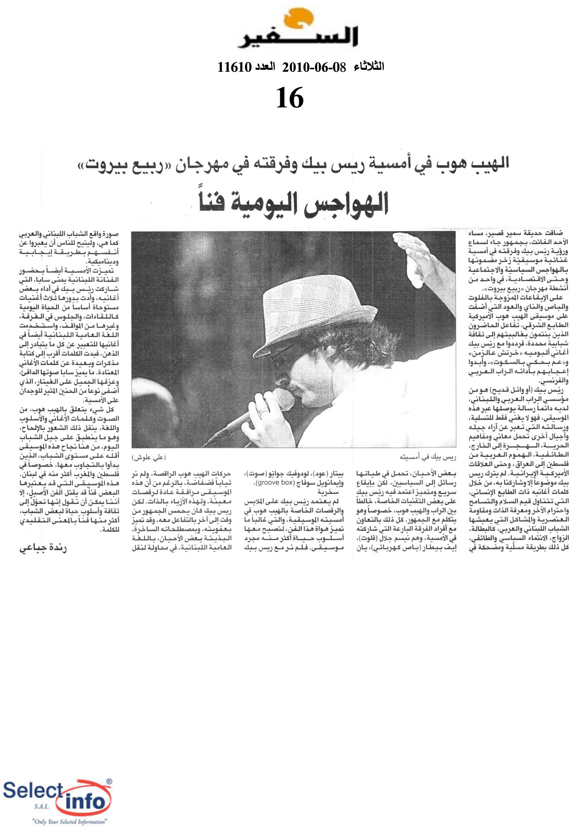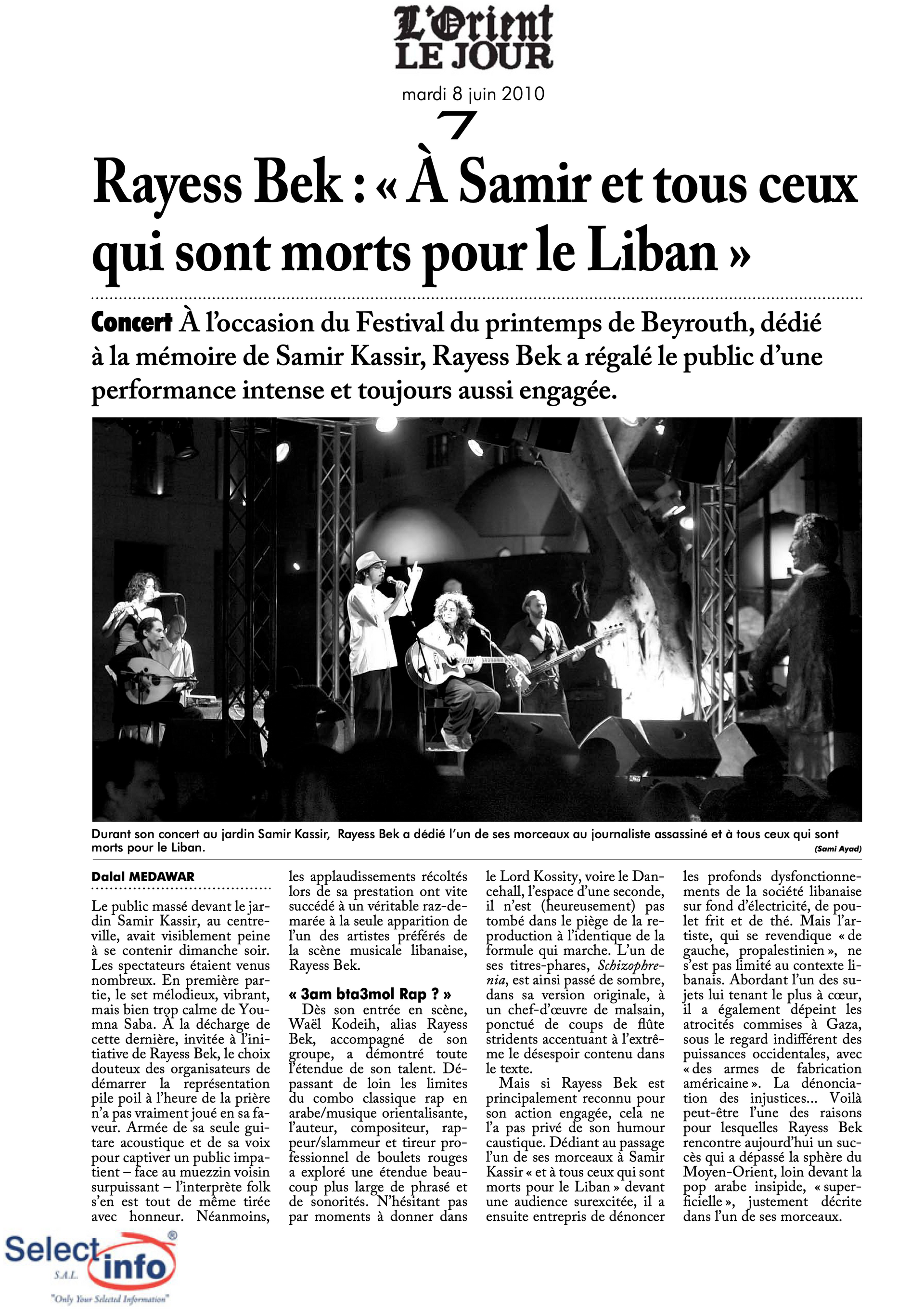 2009: Rayess Bek was selected for the competition of “Le Grand Zebrock”, musical event of the Ile de France. The Rayess Bek Orchestra finished among the three finalists.