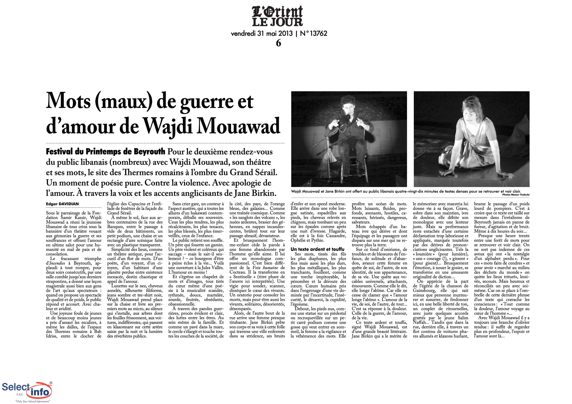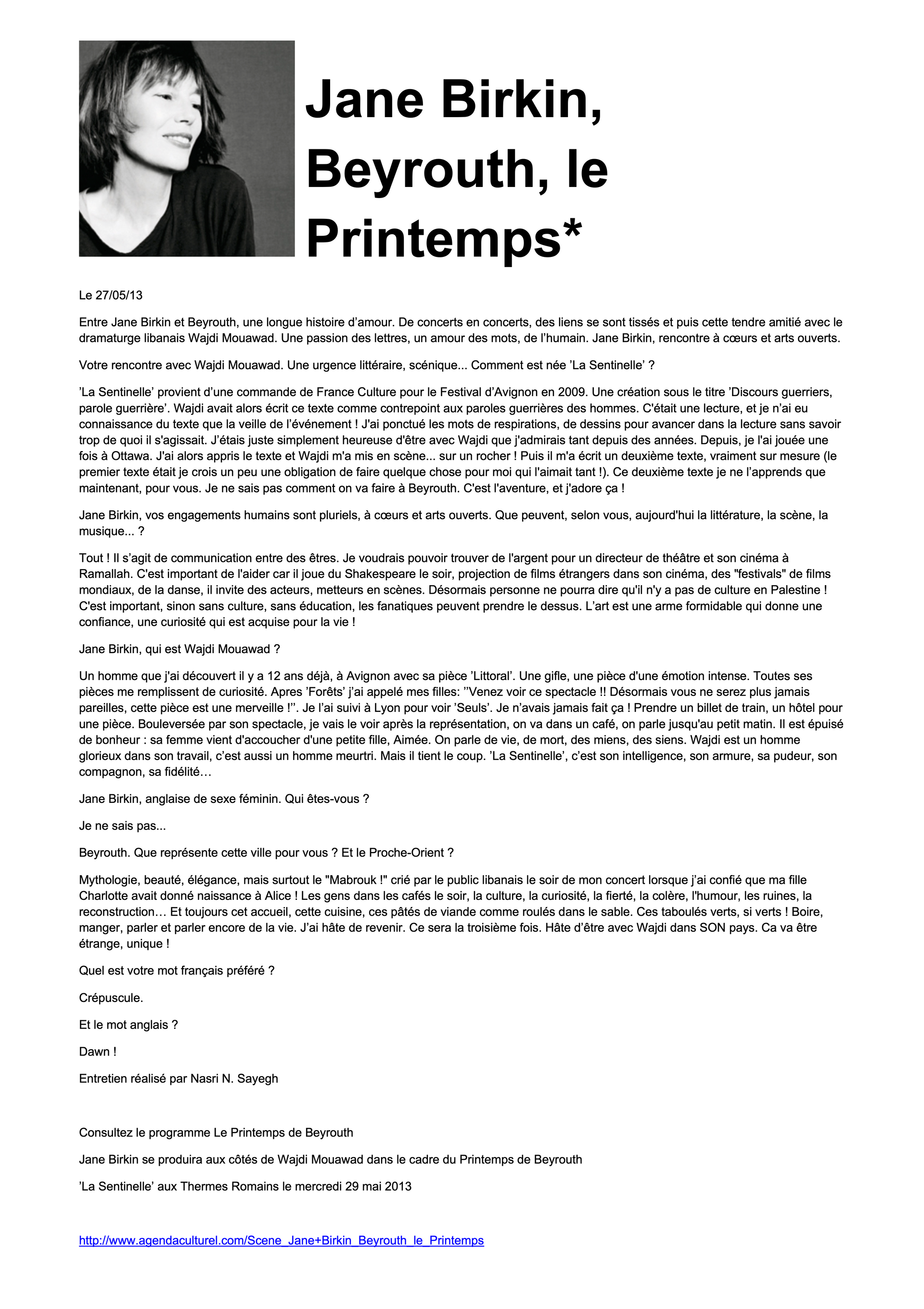Performed by Jane Birkin and Wajdi Mouawad