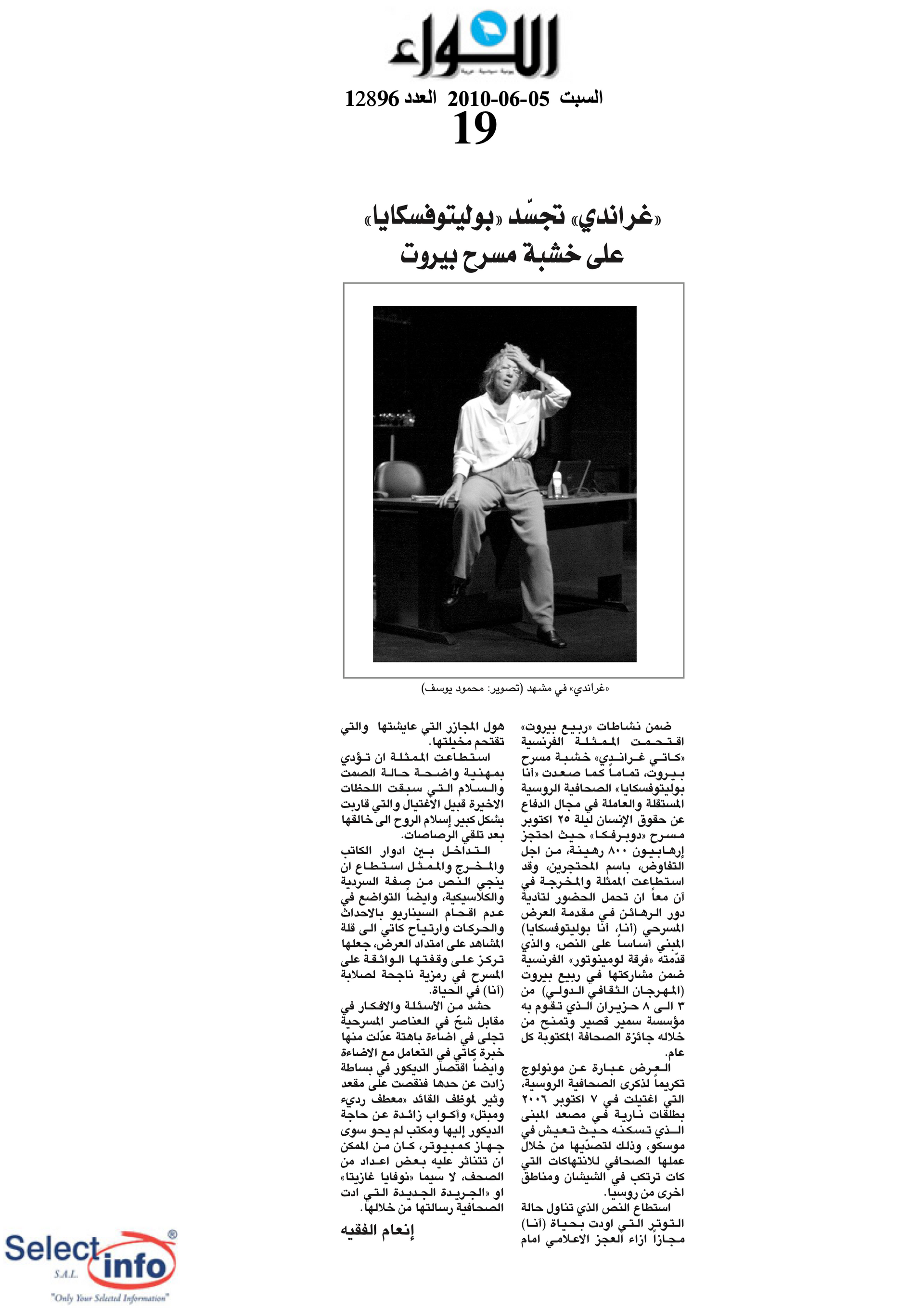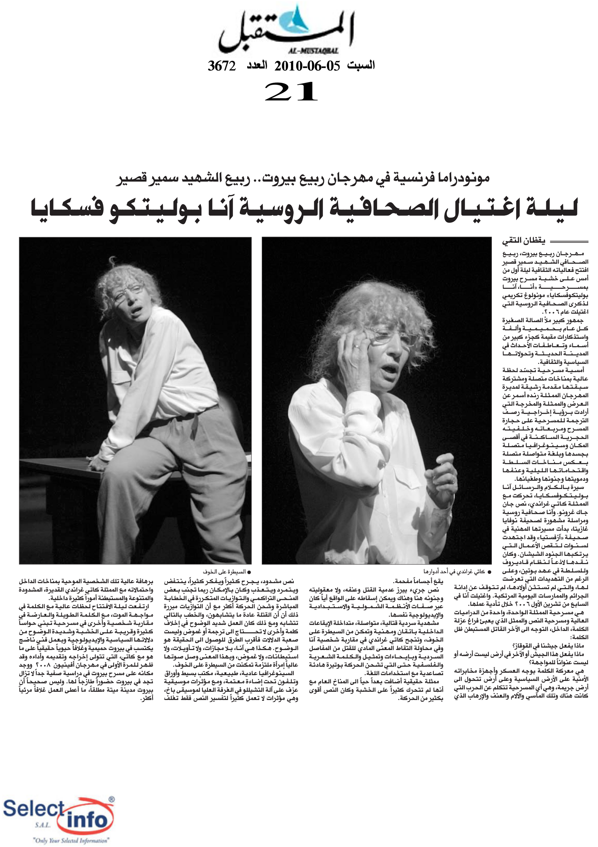A tribute monologue to the Russian journalist, assassinated in 2006.